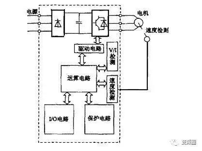 如下图所示,控制电路由以下电路组成:频率、电压的运算电路、主电路的电压、电流检测电路、电动机的速度检测电路、将运算电路的控制信号进行放大的驱动电路,以及逆变器和电动机的保护电路。